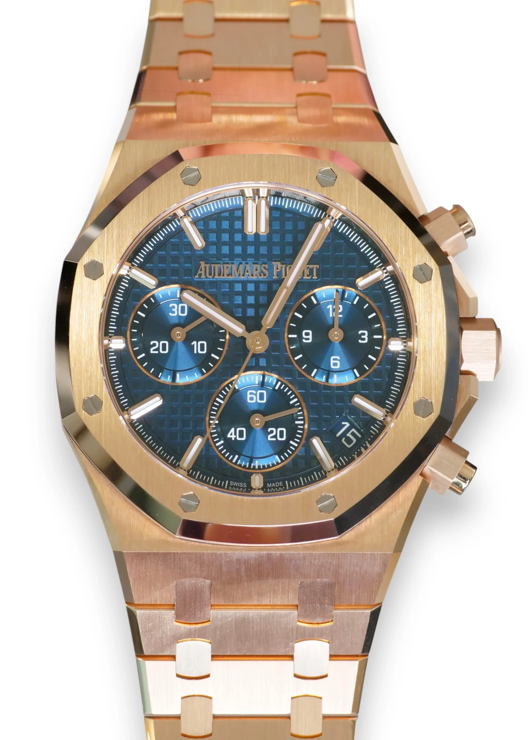 AP Royal Oak Flyback Chronograph 26240OR Blue Dial 18ct Pink Gold Case & Bracelet