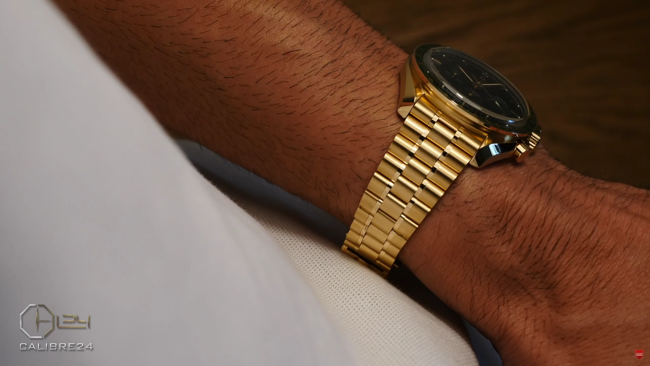 The bracelet is also something special, full solid Moonshine gold bracelet. With an aggressive taper towards the clasp, making it almost a dress watch. The clasp has a beautiful patern and comes with quick adjustment system.