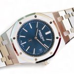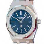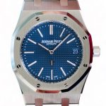 On offer for sale is the holy grail and the most iconic Royal Oak, the legendary extra-thin Jumbo, in the latest release model with Blue dial to commemorate the 50th anniversary – the watch in its original size of 39mm as designed, sketched and produced by Gerald Genta; the very first integrated bracelet watch by the brand during the times of Quartz crises back in the 1972.