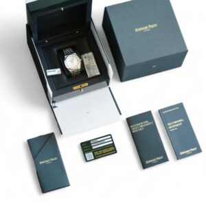 This particular exmaple of Royal is now discontinued and no longer produced, model 15500ST.OO.1220ST.04 in a 41mm case. It is offered in a very lightly worn condition, and presents in Mint condition and is a full set with box and papers dated 2020, with balance of AP factory warranty until 2025.