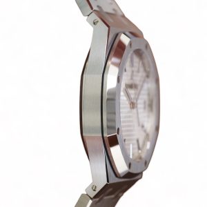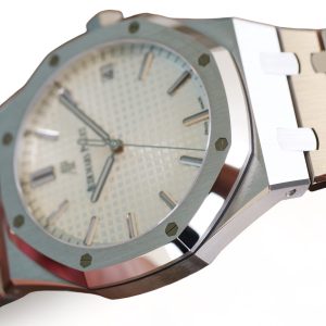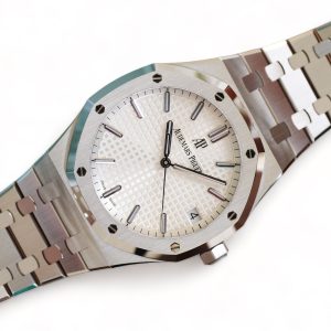 On offer for sale is one of the most iconic and popular watches, one of the finest examples of Haute Horology and fine watchmaking, the Audemars Piguet Royal Oak in the modern size of 41mm and an incredibly beautiful silvery-white dial and stainless steel case and bracelet.