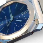 This particular model in blue dial, model reference 103431, is also one of the most popular models in the Octo range, and is offered with a screw down crown to offer 100m of water resistance and a versatile stainless steel case.