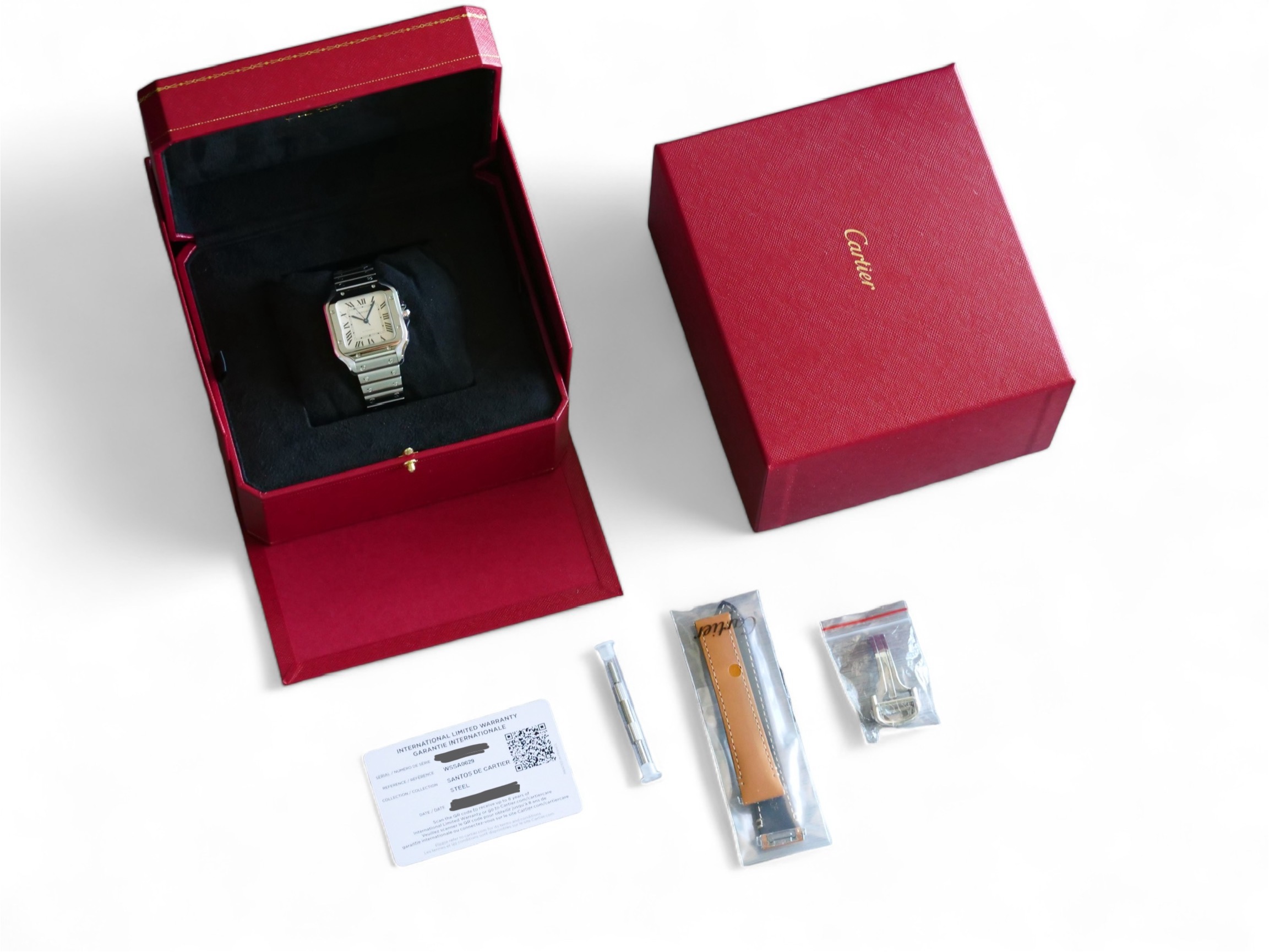 All photos are of the actual watch for sale, and form part of the description and condition disclosure. The serial number of the watch and the warranty card date are redacted from the photo(s) for security and privacy reasons.