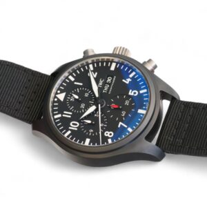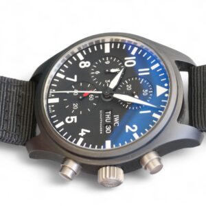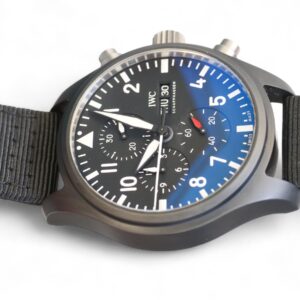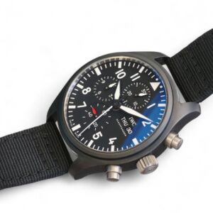Featuring the beautiful IWC Pilot’s Watch Chronograph Top Gun Model IW389101 , in Black ceramic case, Automatic winding, Diameter 44.5 mm, Black dial with luminescence, Black textile strap and Strap width of 21.0 mm.
