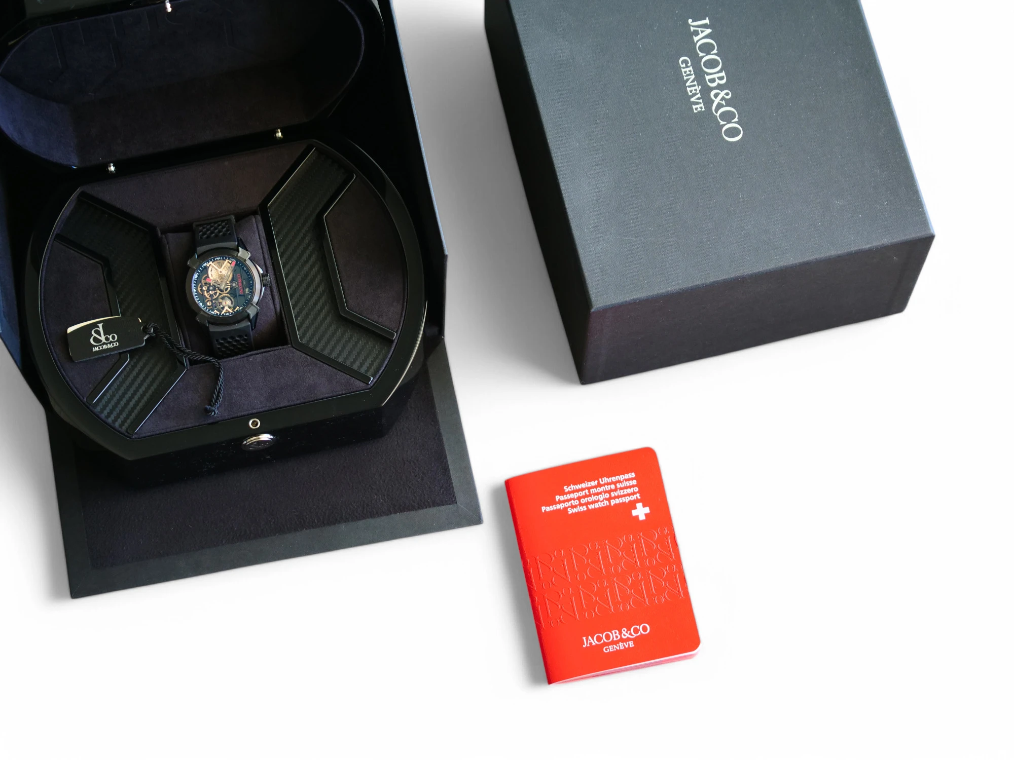 The Epic X Skeleton comes complete with Jacob & Co. boxes and passport dated 2023.