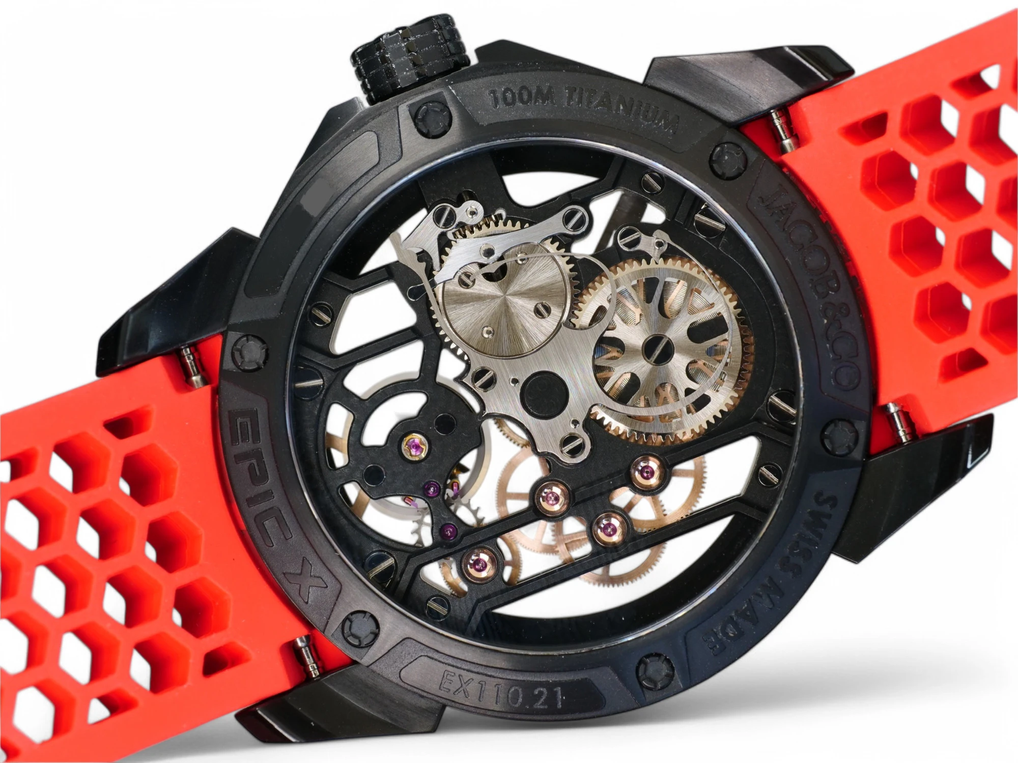 JACOB & CO. EPIC X SKELETON BLACK DLC TITANIUM RED