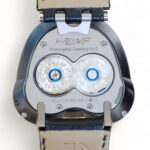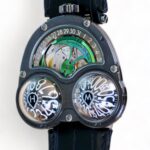 On offer for sale is one of the coolest watches to exist, one of the only 12 ever made, a highly collectible and rare, the MB&F Horological Machine No. 3 Black Frog in Black coated Titanium case, a spectacular 22k Gold Rotor in green, and a Titanium deployant clasp.