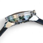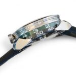 Time on this watch is displayed laterally (on the case side/rim), thanks to revolving hour and minute cylinders, engraved and boosted with Super-LumiNova.