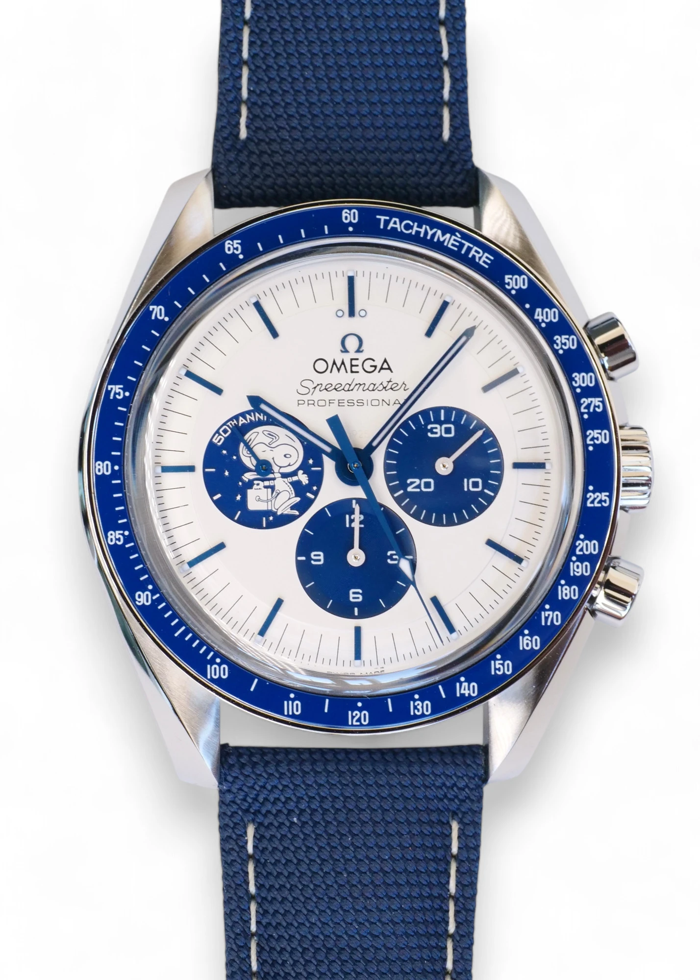 Omega Speedmaster Silver Snoopy Award 50th Anniversary, a very collectible and one of the coolest watches on the market, in Brand New and Unworn condition, Model: 310.32.42.50.02.001.