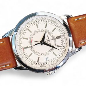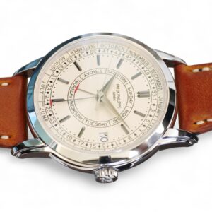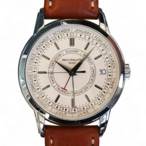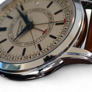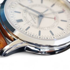 This stainless steel Calatrava Weekly Calendar also houses a completely new self-winding movement with optimized performance. The dial is notable for its exclusive letters and numerals which authentically reproduce handwritten characters i.e. the silvery opaline dial has been painstakingly hand painted by a master artisan making each piece unique. The result is a dial that looks incredibly calm, quiet and subtle despite showing you the full calendar display that accounts for the day, month, and the week according to the ISA 8610 standard.