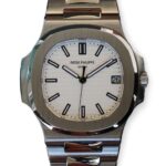 Patek Philippe Nautilus 5711/1A-011with white dial, also referred to as “Piano dial” by collectors, a very collectible timepiece, discontinued over 5 years ago making it a very difficult and rare timepiece to come by now as full set, complete with all papers and white serial hang tag.