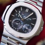 Patek Philippe Nautilus Moonphase 5712/1A in Stainless Steel, On offer is a rare opportunity to acquire one of the rarest and one of the most iconic watches. Offering a complication movement in a sports watch with moonphase, date and power reserve, yet in an ultra thin case of only 8.5mm, Model: 5712/1A-001.