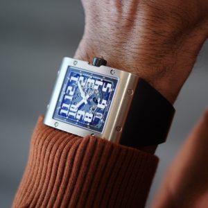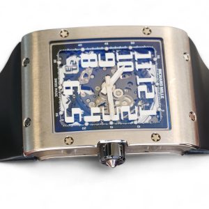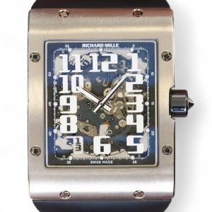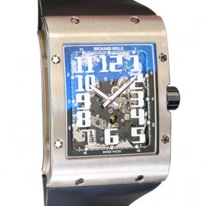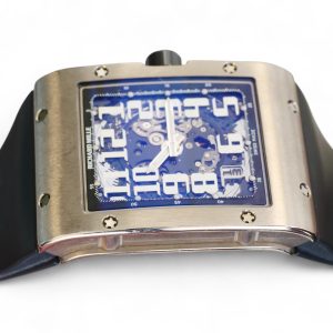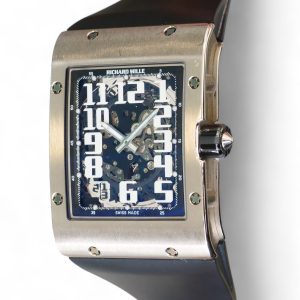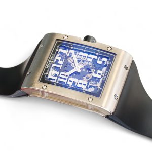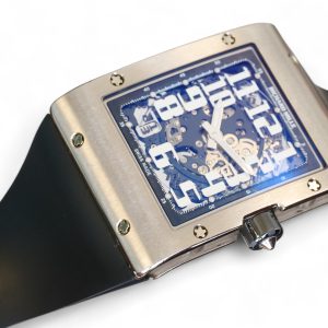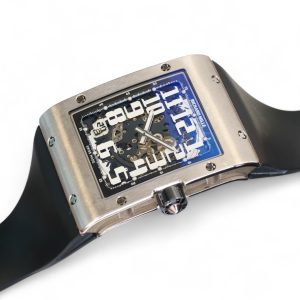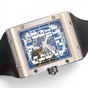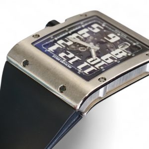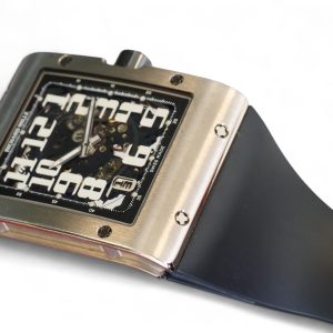 The RM016 on offer for sale is a spectacular configuration of 18ct white gold on a rubber strap, with the case size of 49.8mm x 38mm featuring only 8.4mm thick case, designed originally by the brand for customers who originally wanted their RM to be thin enough to slip under the cuffs.