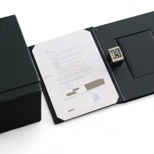 The watch presents in excellent and unpolished/factory condition and comes as full set with box with an integrated winder and papers dated 2014.