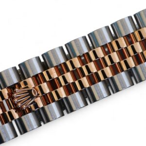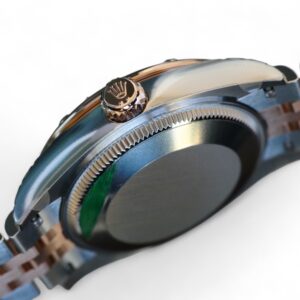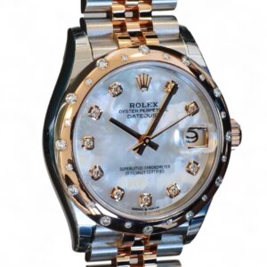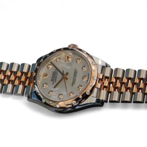 A strikingly beautiful Rolex Datejust 31 in a gorgeous mother-of-pearl diamond-set dial, 24 diamond domed bezel in 18ct Everose gold, and an iconic two tone Jubilee bracelet.