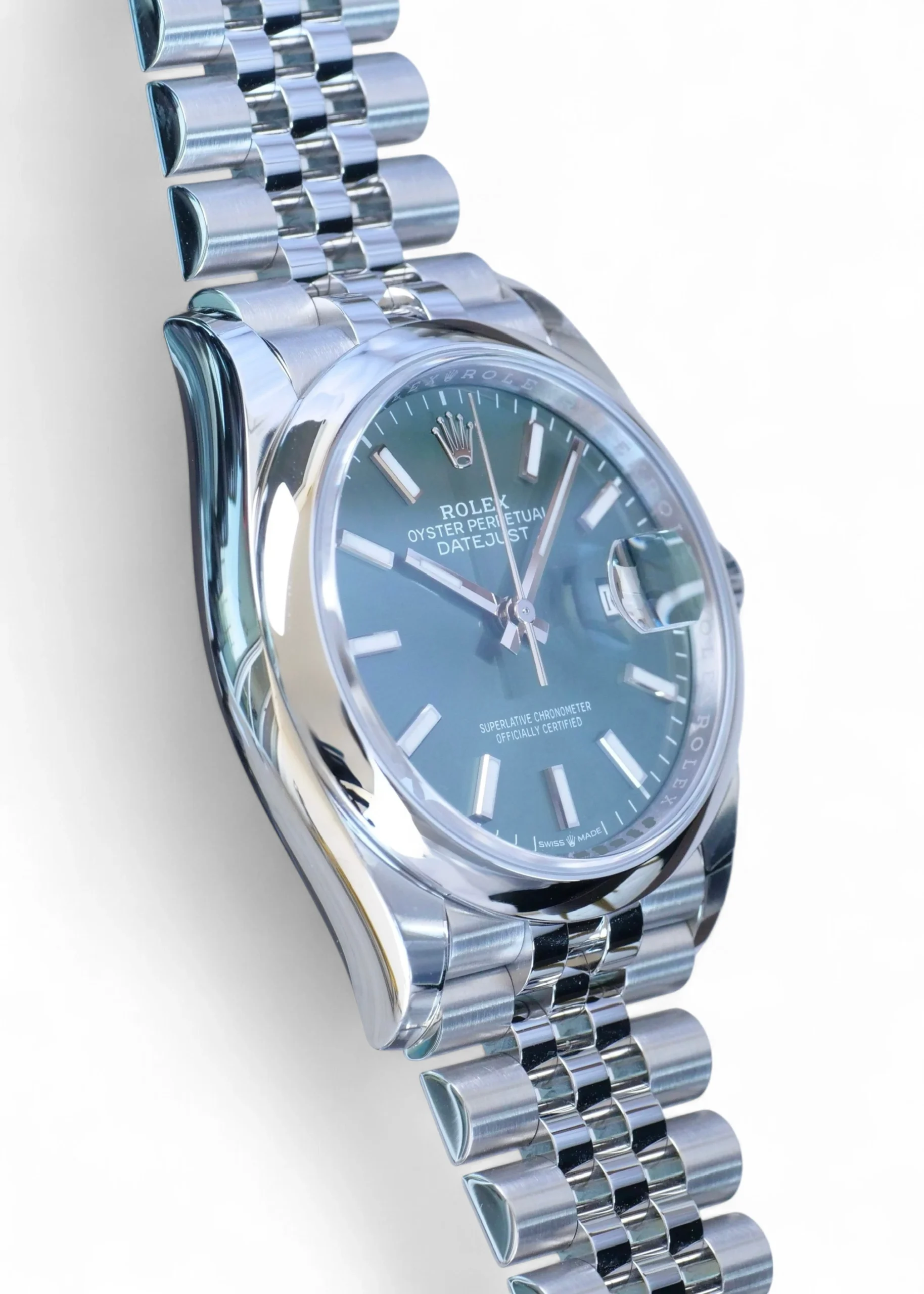 Please note that we don’t use catalog photos rather all the photos on this listing are taken from the actual Rolex Datejust 36 Mint Green Dial timepiece for sale and are our intellectual property across all our platforms. The photos showcase the very timepiece that is available for sale i.e. what you see is exactly what you will receive, shall you wish to purchase this timepiece.