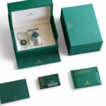 The watch comes complete as a full set with factory presentation boxes and papers.