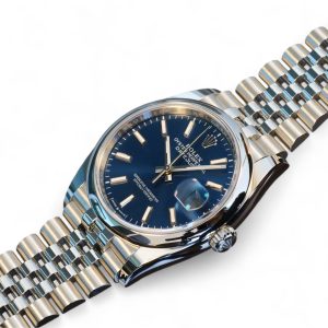 On offer for sale is a very beautiful Rolex Datejust in 36mm case size, in sunburst blue dial, smooth bezel and a very popular jubilee bracelet. The watch comes in brand new condition and is offered as full set with all boxes and papers dated 2024.