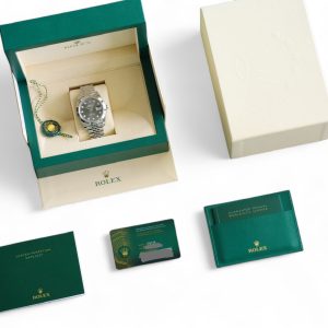The watch is offered as Brand New and unworn with some factory stickers still on, as can be seen in the photos, and is also a fresh stock dated 2024, and comes with full 5 years of Rolex factory warranty. The watch comes full set with all factory boxes and papers as shown in the photos.