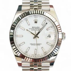 All photos are of the actual Rolex Datejust 41 White dial 126334 timepiece for sale, and form part of the description and condition disclosure. The photos are indicative of the new condition that the watch presents. The serial number is redacted from all the photos, as applicable, along with the date on the warranty card for security and privacy reasons.