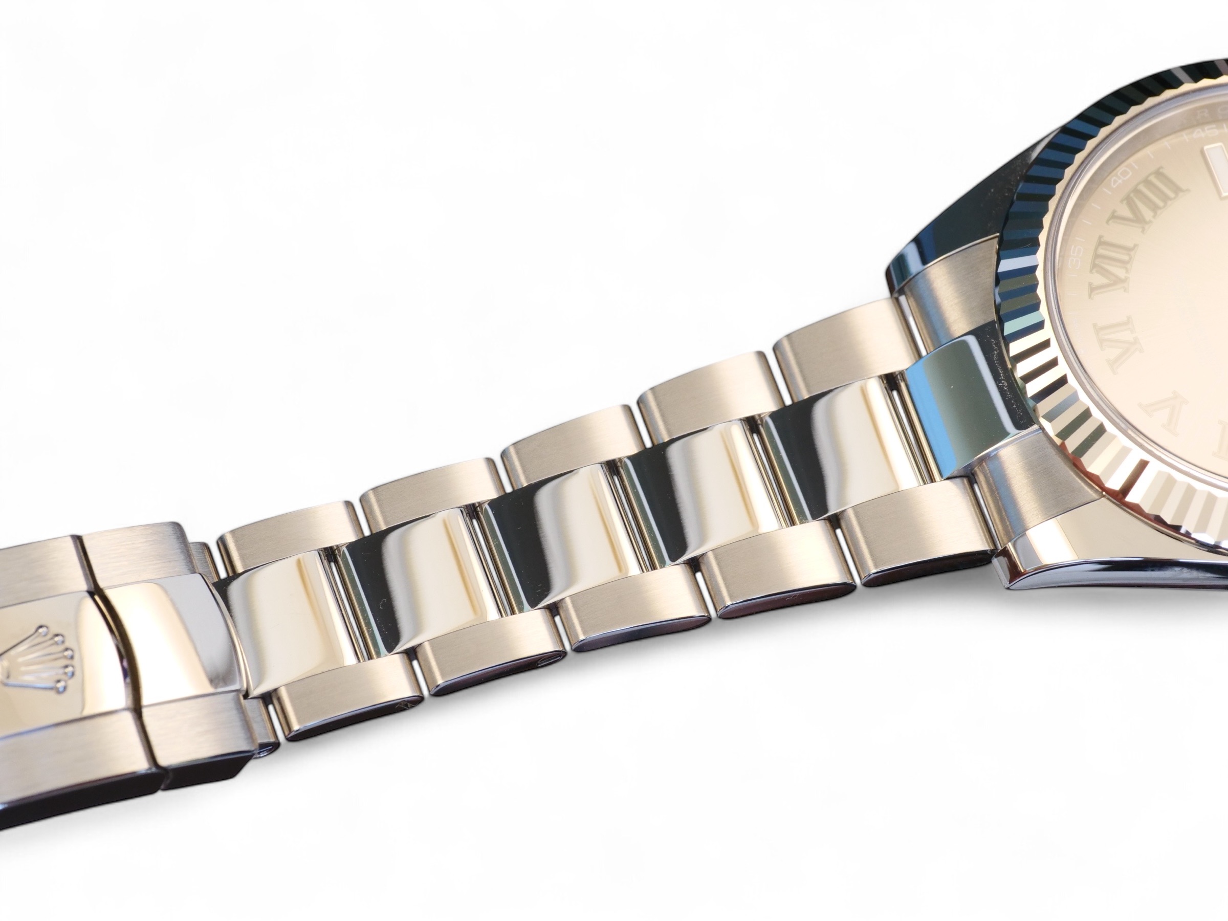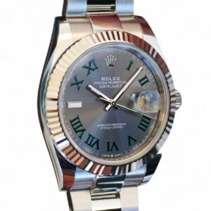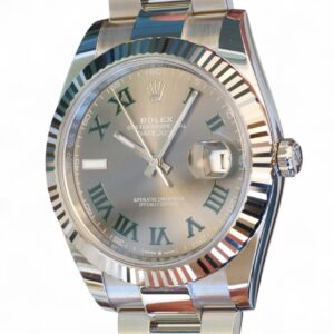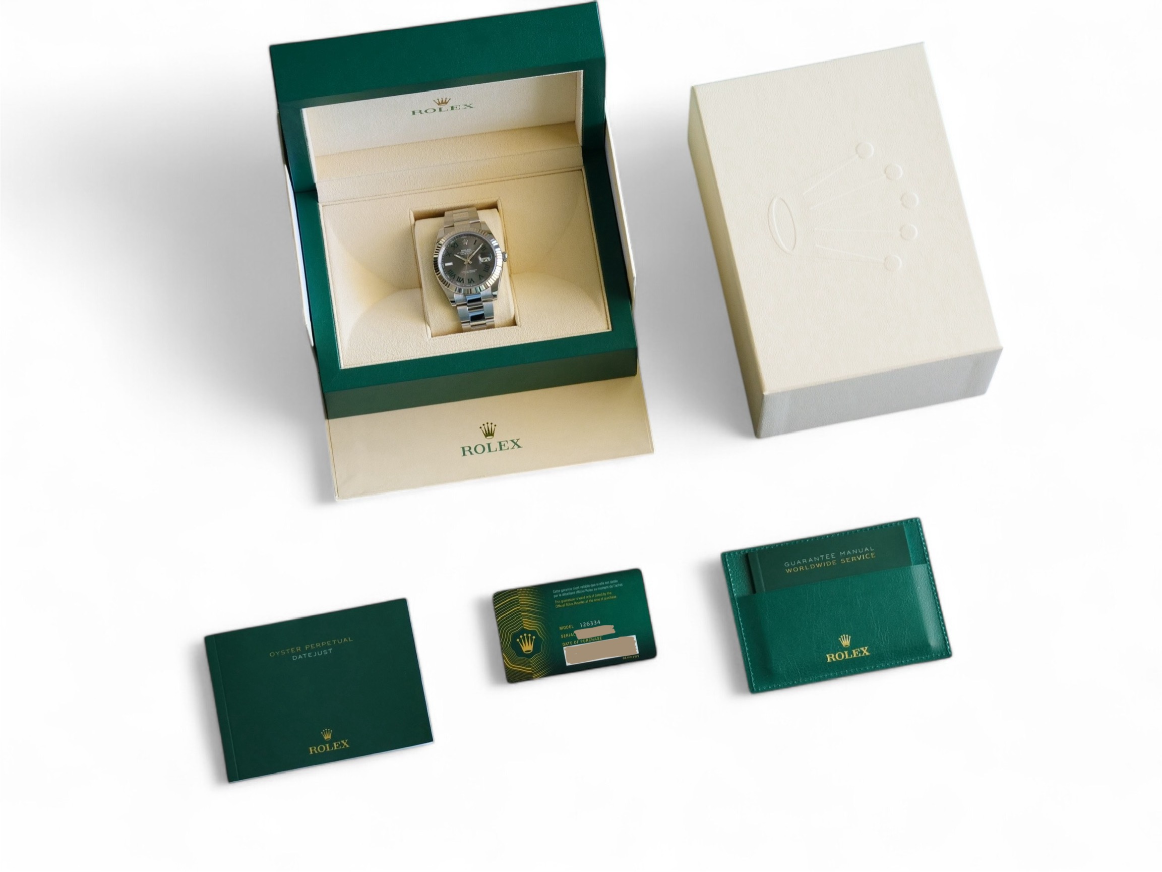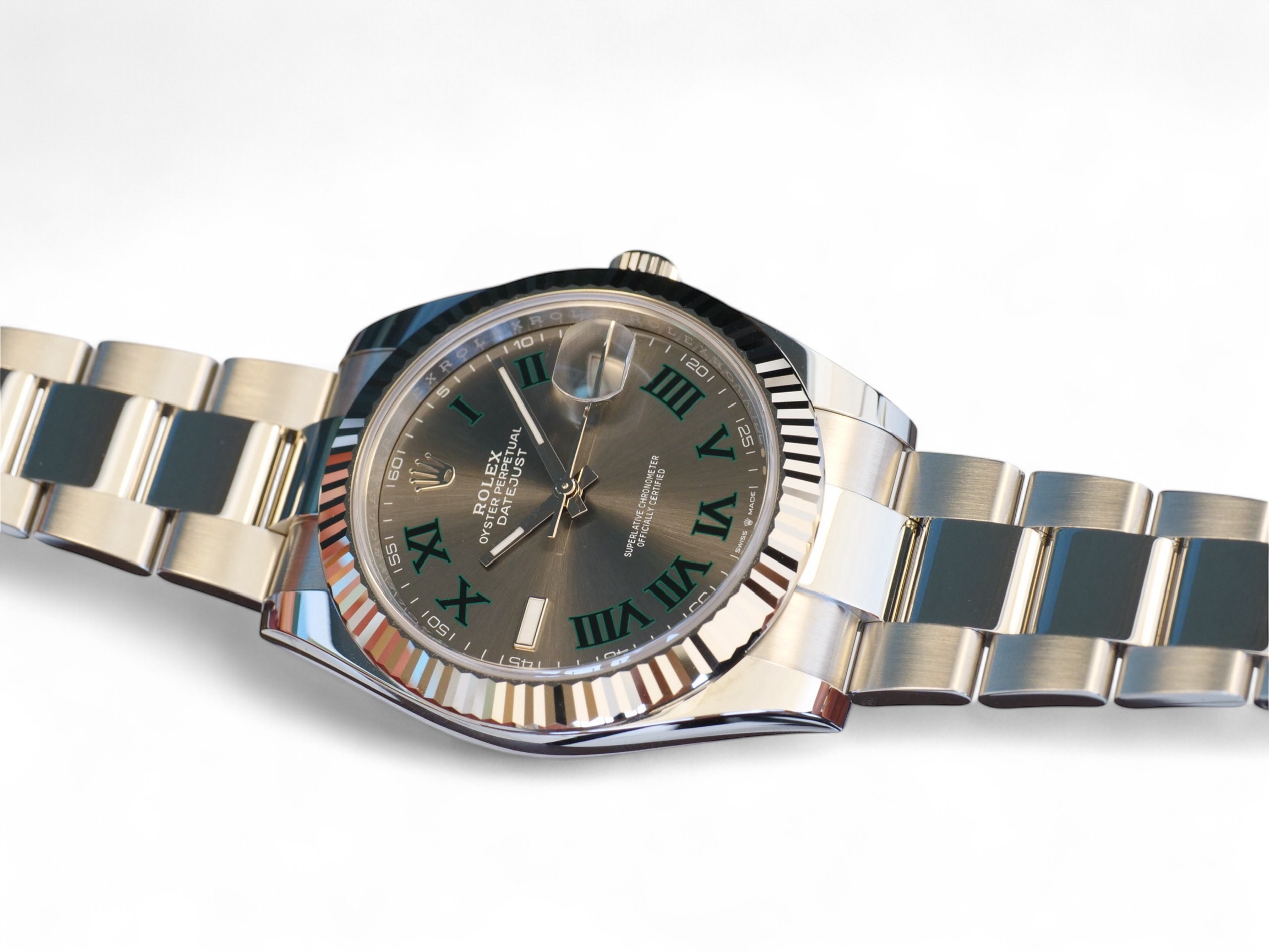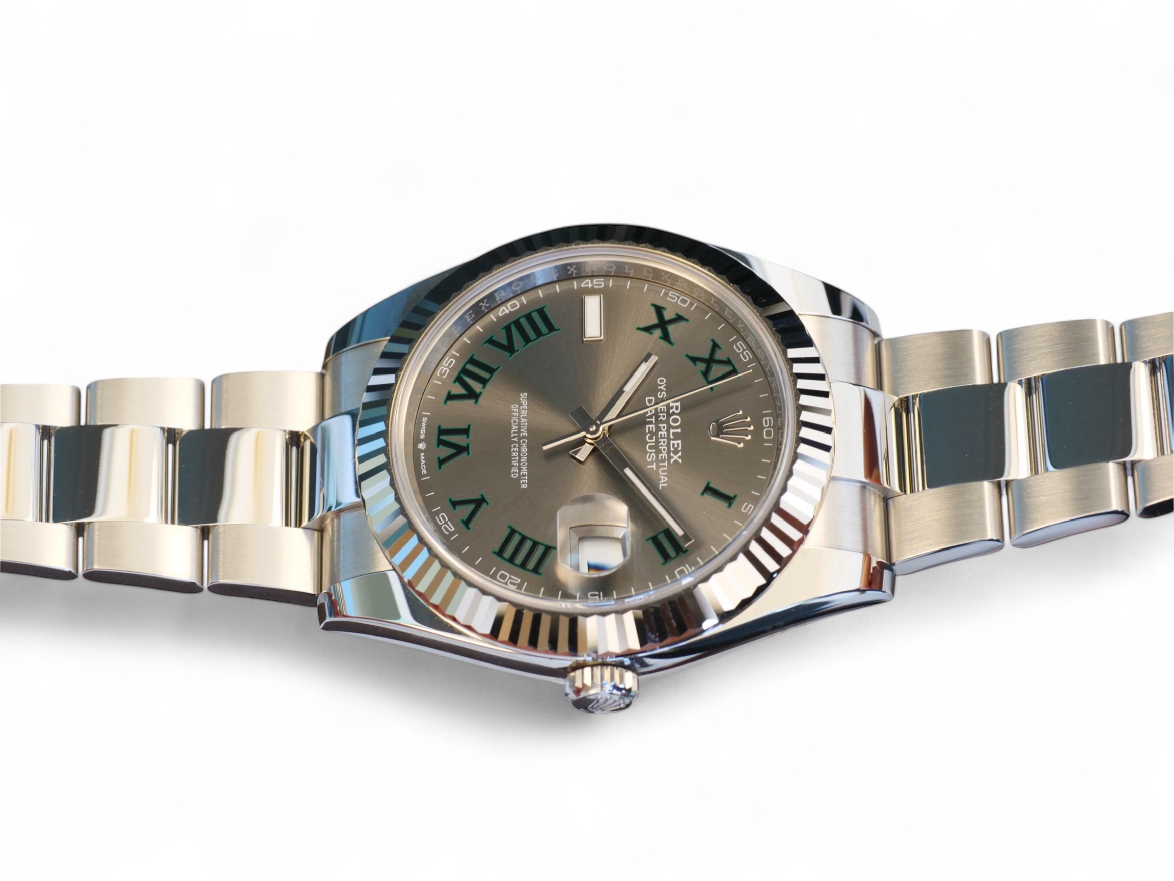 Rolex Datejust 41 Wimbledon Roman Dial in a very beautiful and the most sought-after configuration of 18ct fluted bezel and Oyster bracelet.