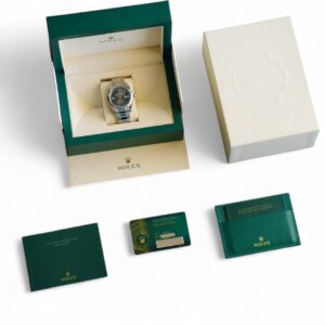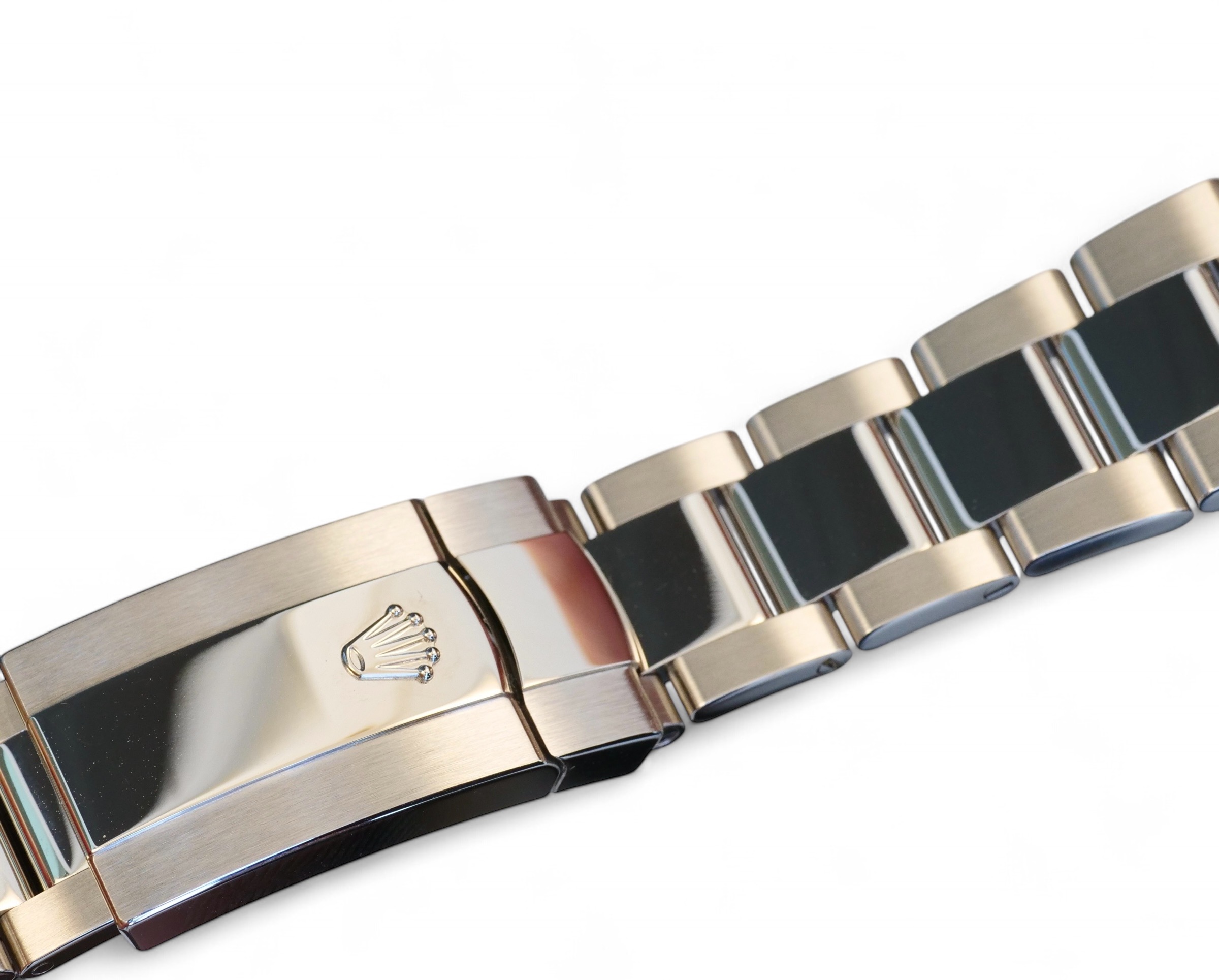 The watch presents in Brand New, Unworn and Unsized condition. The watch is further a fresh Q4 2024 stock with balance of Rolex warranty until Q4 2029. The watch is offered complete as a Full set with factory presentation boxes and papers, including green Rolex tag.
