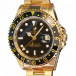 A very collectible Rolex GMT Master II 18ct Yellow gold model 16718, a gorgeous black dial with black bezel, a very well-preserved example in a long-discontinued configuration – a beautiful example that rarely comes to the market.