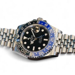 On offer for sale is one of the most sought after and desired Rolex watches, the GMT Master-II Model 126710BLNR, also know as Batgirl, on jubilee bracelet and a very popular black and blue ceramic bezel, and a blue GMT hand.