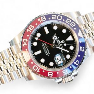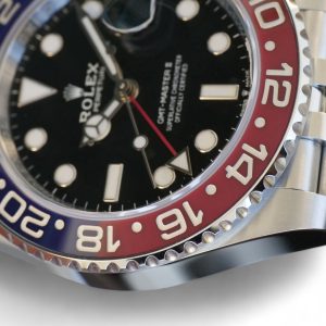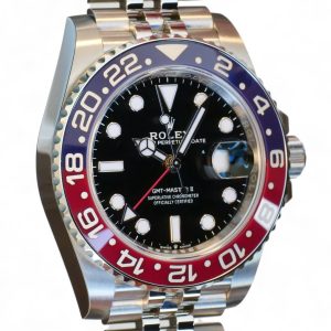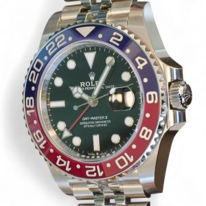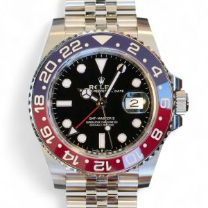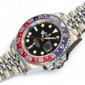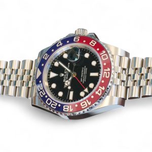 On offer for sale is one of the most sought after and historically iconic Rolex watches, the GMT Master-II Pepsi on Jubilee bracelet model 126710BLRO.