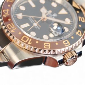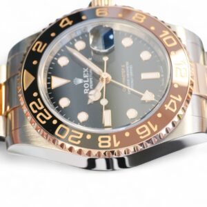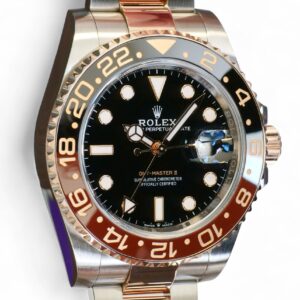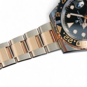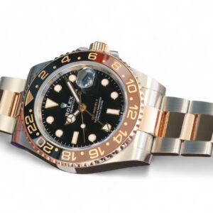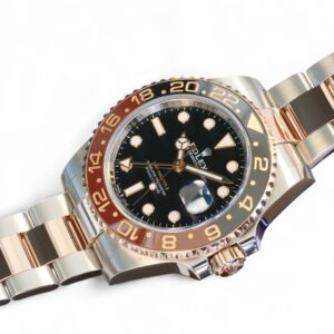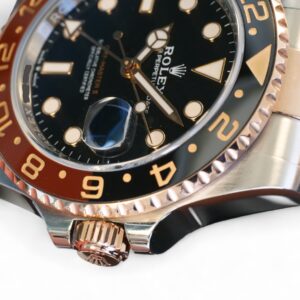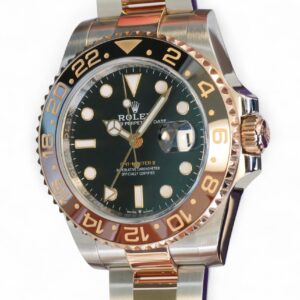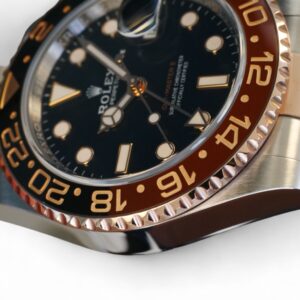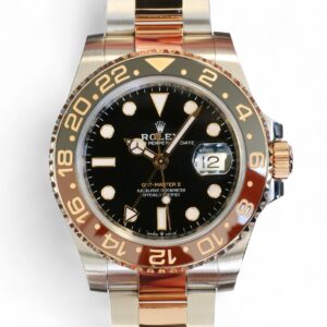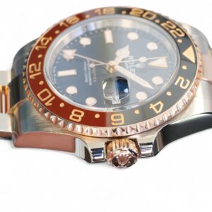On offer for sale is a highly desirable, the iconic and hisoricaly rich, Rolex GMT Master-II Rootbeer in a very beautiful configuration of Oystersteel and 18ct Everose gold, and a spectaculer brown-black ceramic bezel, model reference 126711CHNR.