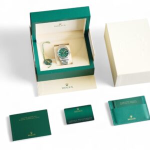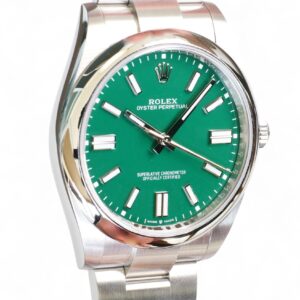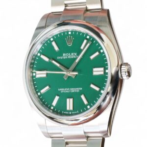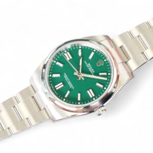 The Rolex OP41 Green Dial watch presents in Brand New condition and comes full set with all factory boxes and papers from Rolex Boutique. It is also a fresh stock dated Q4 2024 with balance of Rolex factory warranty until Q4 2029.