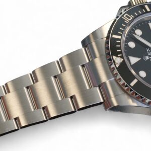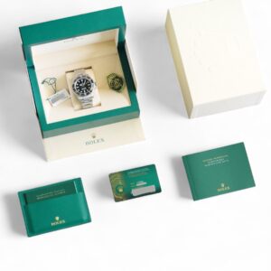 The watch presents in brand new, unworn and unsized condition with factory stickers still intact on the case, bracelet and the clasp, as can be seen in the photos. It is further a fresh Rolex stock dated July 2024 and comes with full (balance of) five years of Rolex official warranty. The watch is offered as full set with all boxes and papers including the white serial tag, as shown in the last photo.