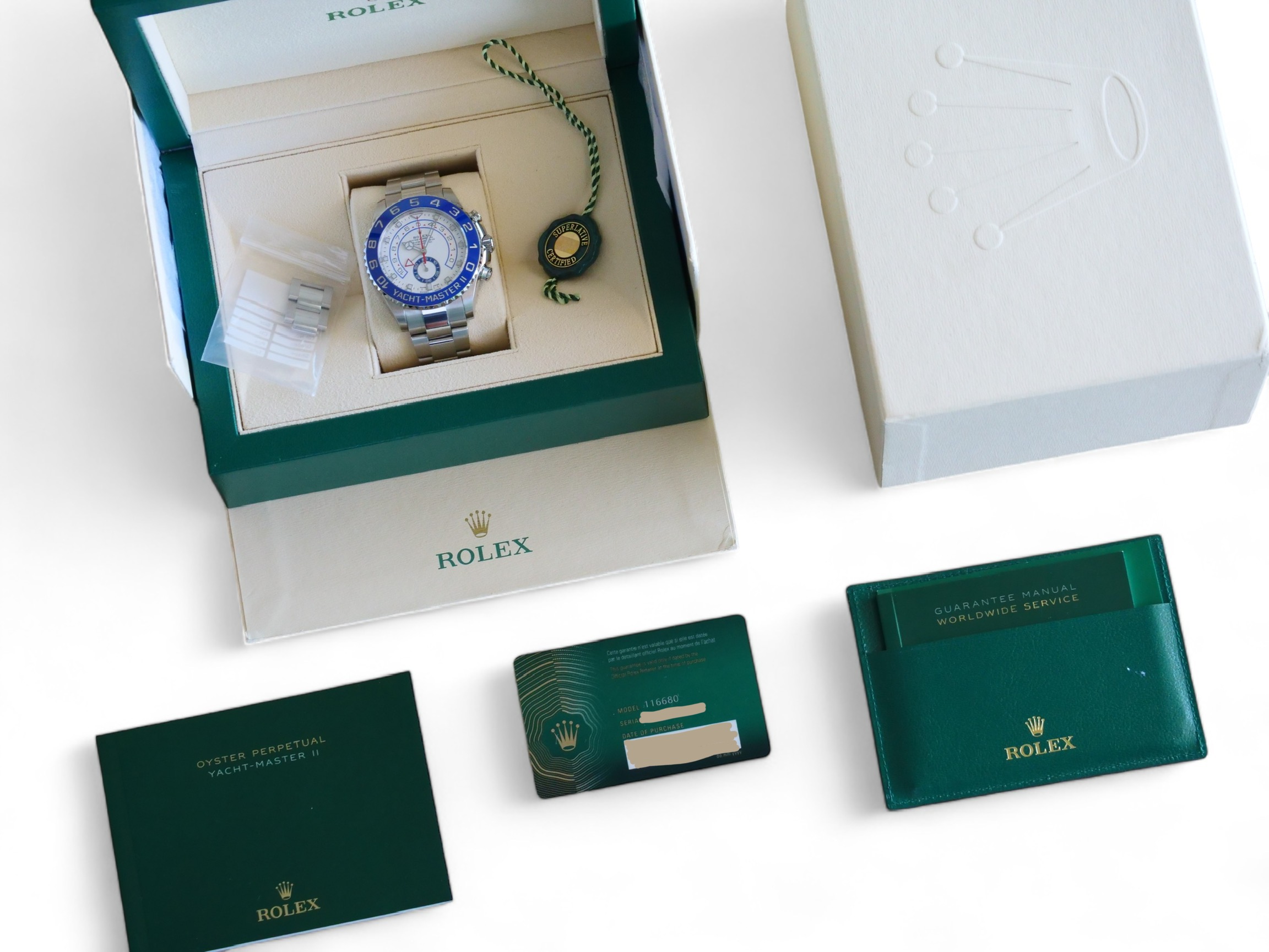 This is a highly collectible timepiece as the entire line of Rolex Yacht-master II has now been discontinued in 2024, making this particular example of unworn and brand new piece a rare opportunity. We have the further pleasure of offering this beautiful timepiece for under its last known manufacturer’s retail price (MSRP) as well.