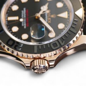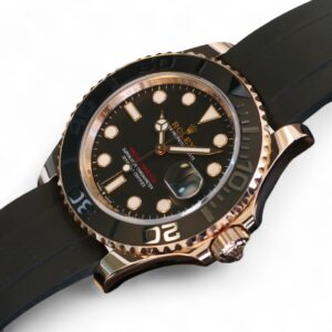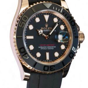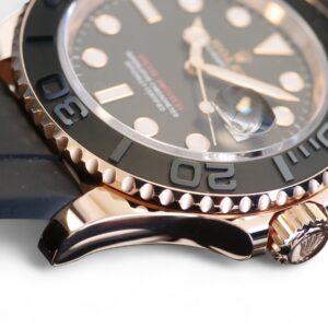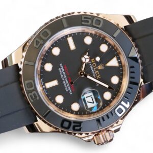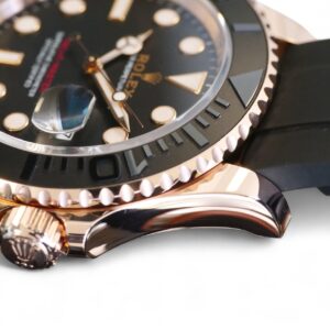 Presenting a very beautiful and attractive Rolex Yacht-Master in the most sought after size of 40mm, an 18ct Everose gold case with matte black dial, and a glossy black ceramic bezel, model reference 126655 with new movement and a new adjustable glidelock 18ct everose gold clasp.