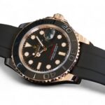 Presenting a very beautiful and attractive Rolex Yacht-Master in the most sought after size of 40mm, an 18ct Everose gold case with matte black dial, and a glossy black ceramic bezel, model reference 126655 with new movement and a new adjustable glidelock 18ct everose gold clasp.