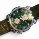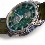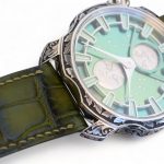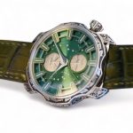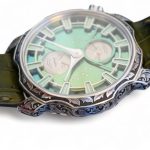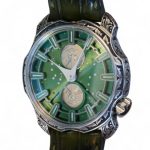 SARPANEVA NORTHERN STARS, on offer for sale is a work-of-art, a very rare and highly collectible, one of a kind and a piece unique, Sarpaneva Northern Stars in an incredibly beautiful Green dial with radial brushing, and only-once produced, a manufacturer hand engraved Korona k3 case, caseback, and the buckle.