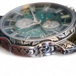 The hand engraving is further no less special than the watch itself and is carved to the finest details and perfection by the legendary artist, Joanne Ryall – Hand Engraver, based in England. The attention to detail of engraving on every case lug, bezel, the strap buckle and even the caseback can be seen in the macro shots included in this listing, which showcase nothing but a display of masterpiece of art, craftsmanship and magnificence of the Sarpaneva Northern Stars.
