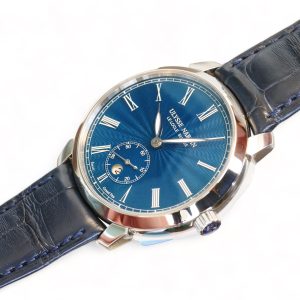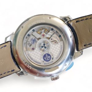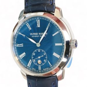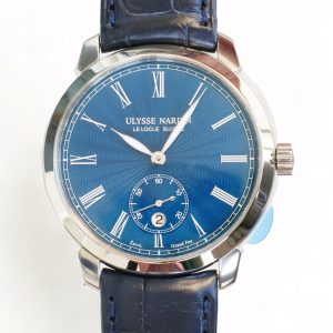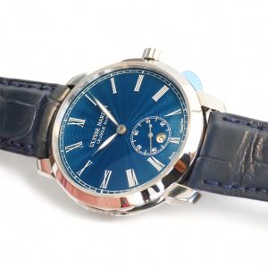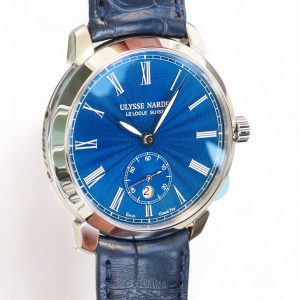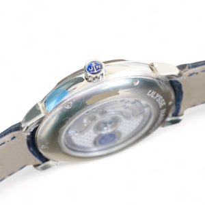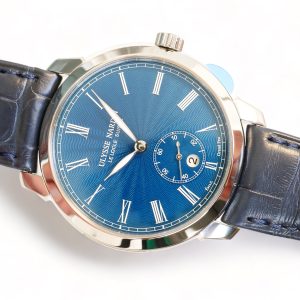 Classico Manufacture is powered by the self-winding UN-320 caliber, a movement entirely designed and produced in-house by the Swiss manufacture. It incorporates the celebrated silicium hairspring and anchor escapement, also designed and manufactured in-house. Ulysse Nardin’s unique savoir-faire is evident in the artistry of the “Grand Feu” enamel dial. Created by Donzé Cadrans, specialists in the fine art of enameling, this “Grand Feu” enamel dial is a stunning blue.