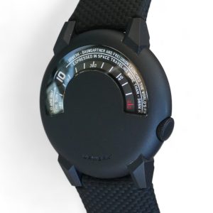 Inspired by the brand’s first ever watches, the UR-101 and UR-102, the UR-102 Reloaded, a limited edition of 100 pieces only, now sold out and discontinued, features the same minimalistic case design but with sharp angular lugs that speak to the brand’s distinctly cutting-edge aesthetic. Showcasing Urwerk’s signature satellite hour marker that floats across the dial from 9 to 3 o’clock, and cased inside a PVD-coated blacked out design, the UR-102 Reloaded’s display possesses core attributes and looks of the brand, while offering a futuristic and unique experience of time viewing to its wearers and owners.