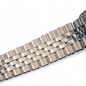 The bracelet will go to the maximum size of up to 7.5″ wrist size/circumference. The clasp is firm and holds the watch as it should.